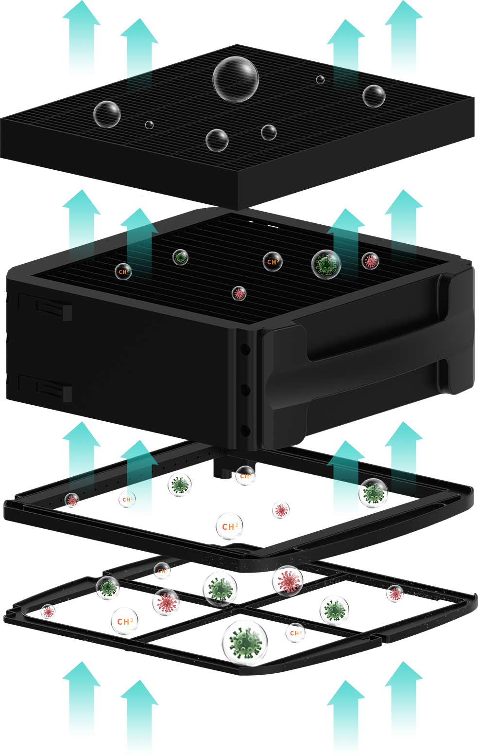 通過5重凈化把關,徹底分解甲醛、TVOC等有害氣體,