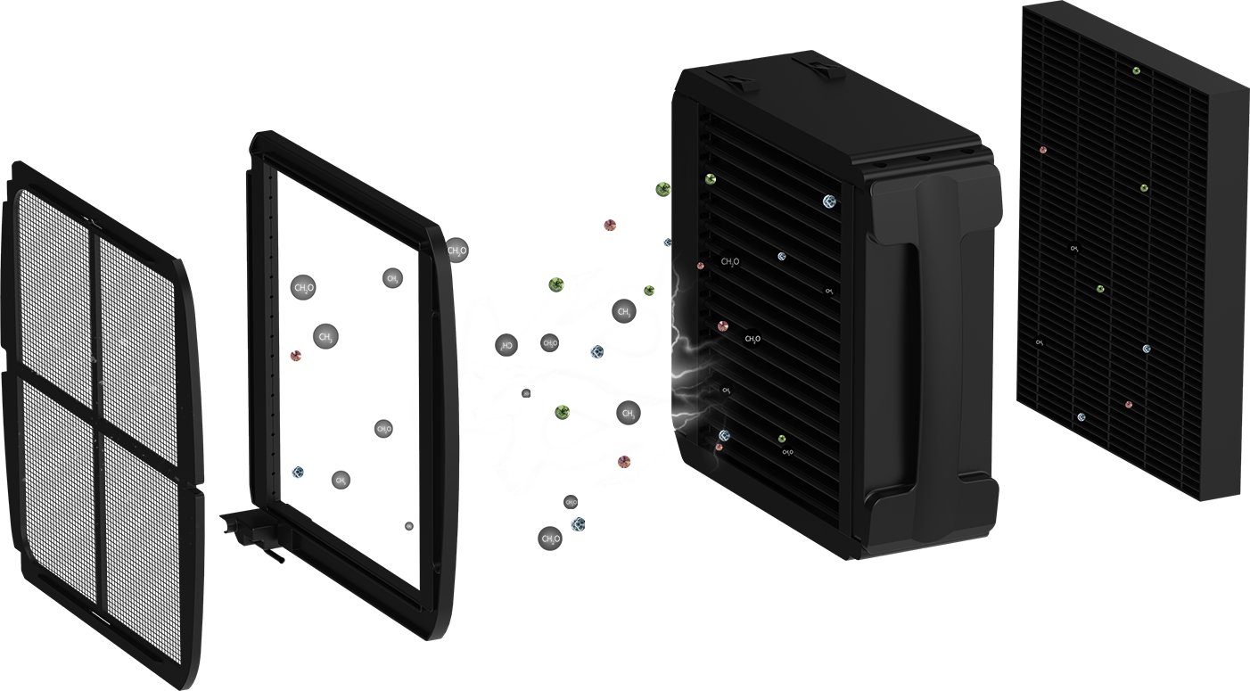 采用全新靜電吸附裝置,通過高壓電場分解甲醛、殺滅病毒、細菌等微生物,