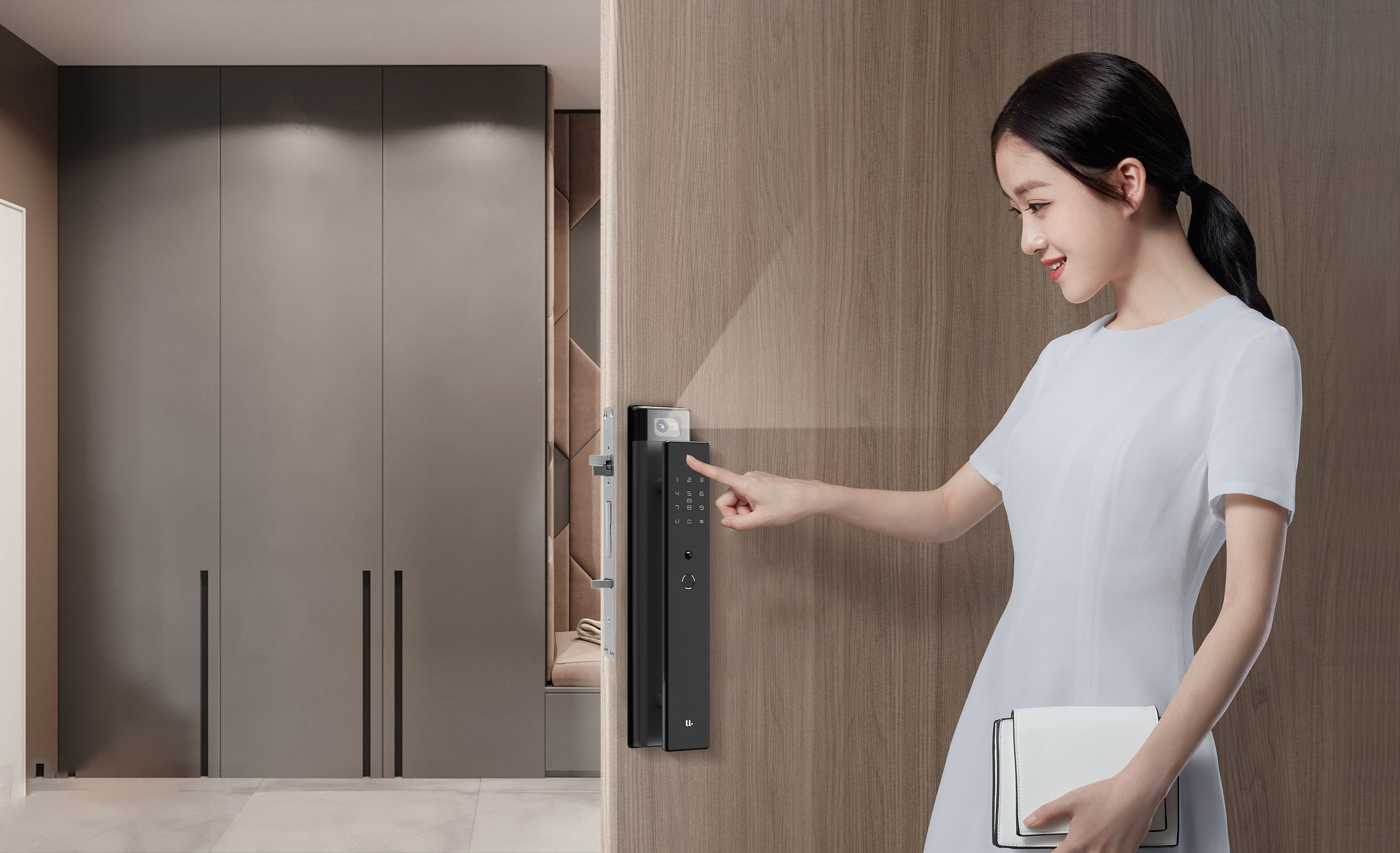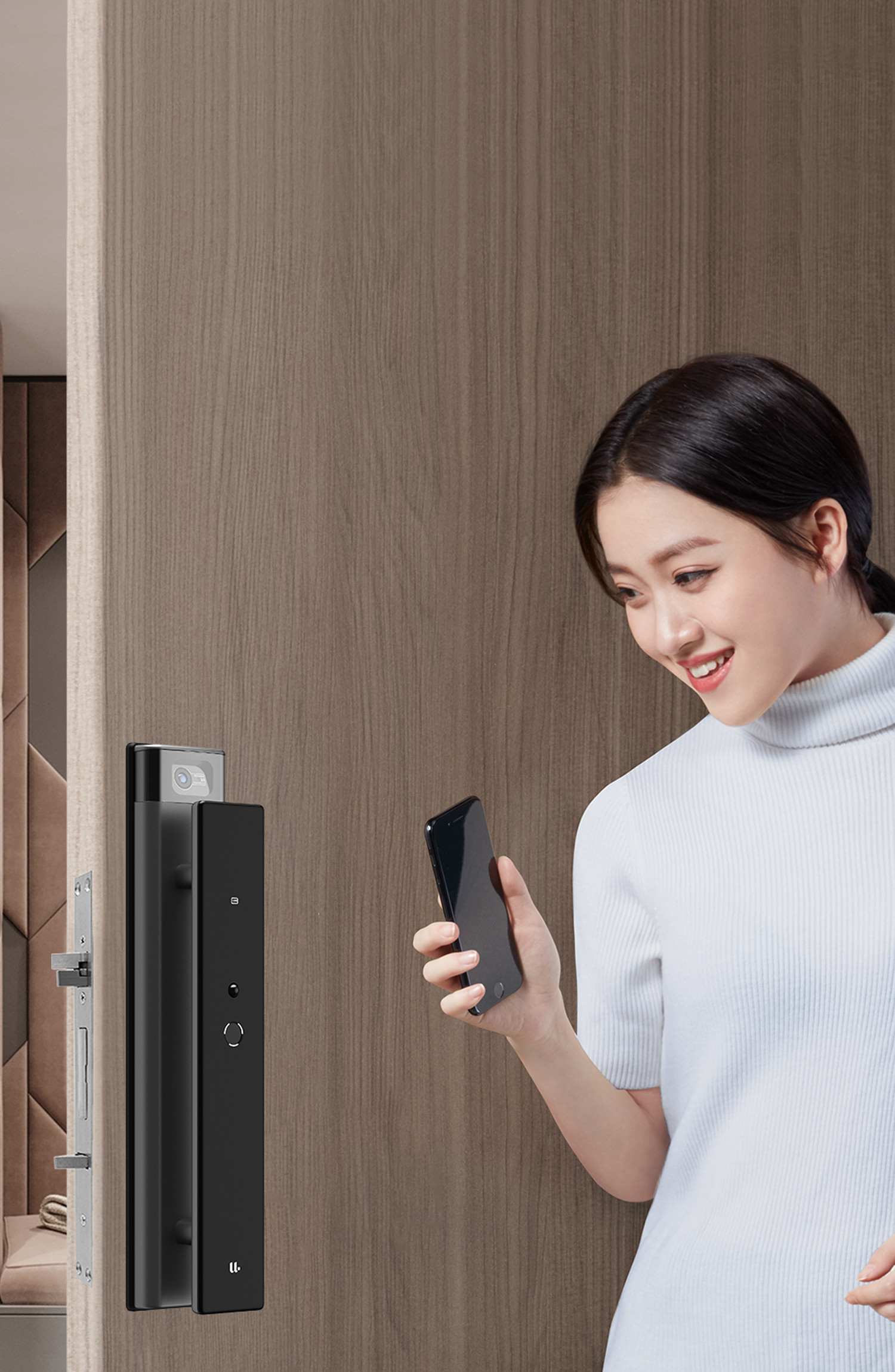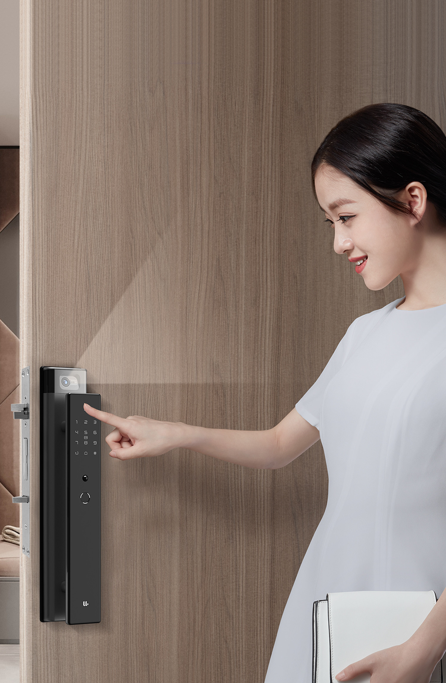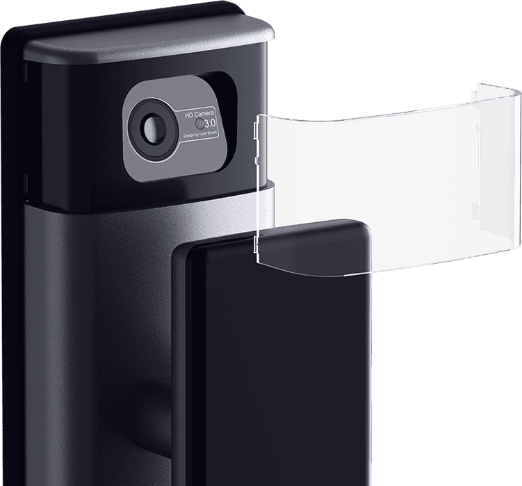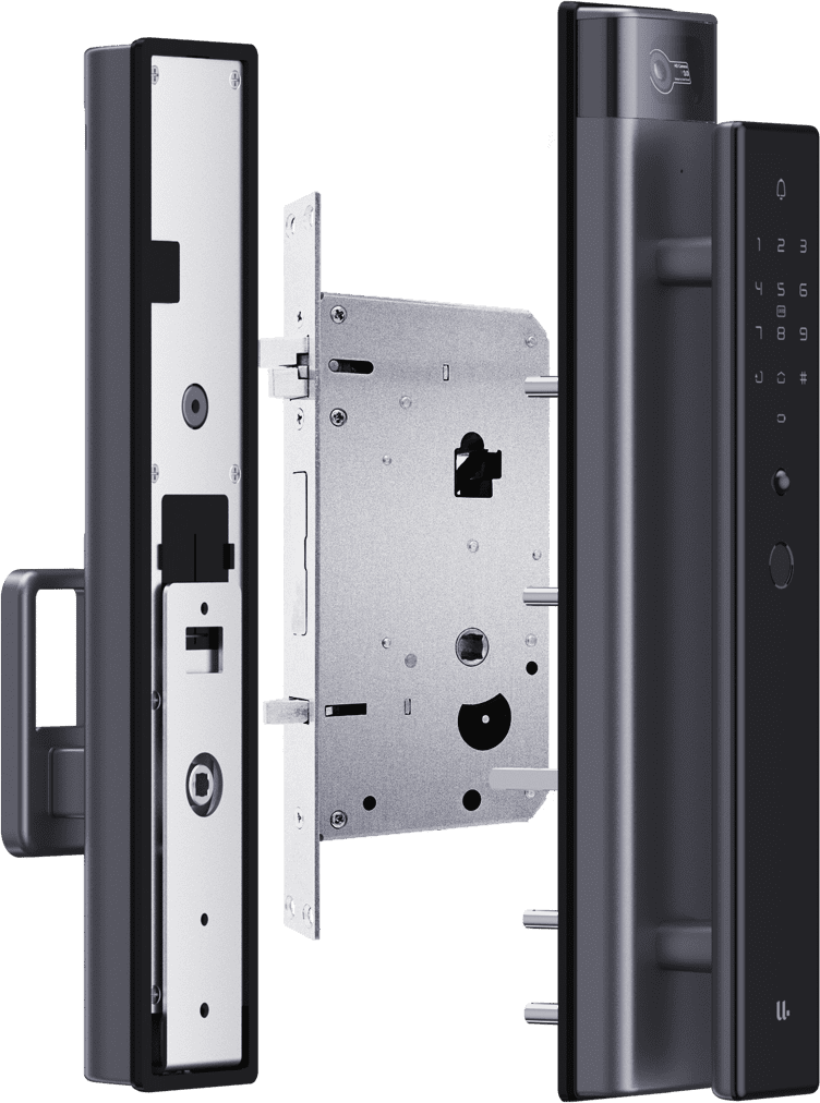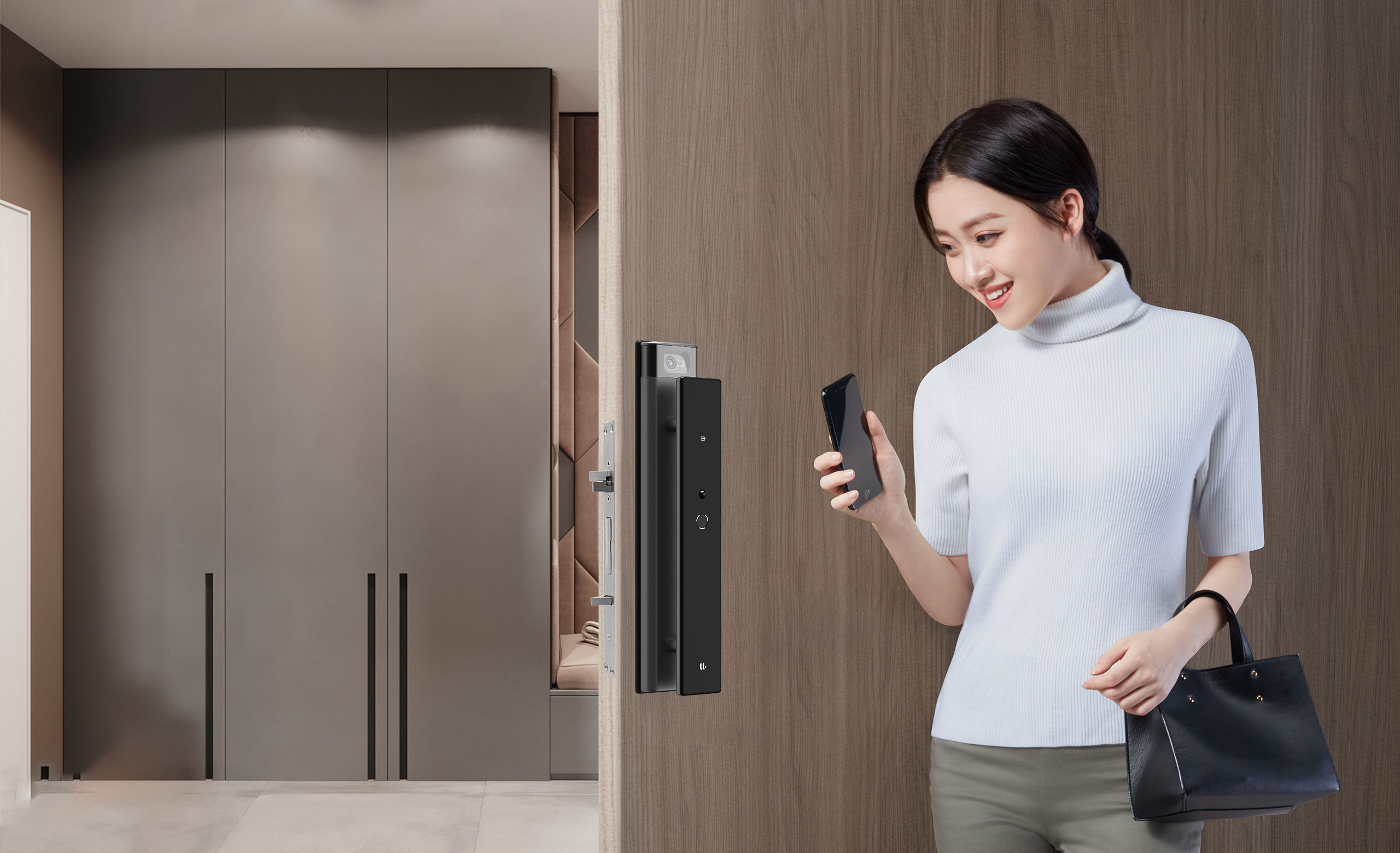 懸浮式推拉把手設計,符合傳統的開門習慣, 指紋識別、推拉一氣呵成。