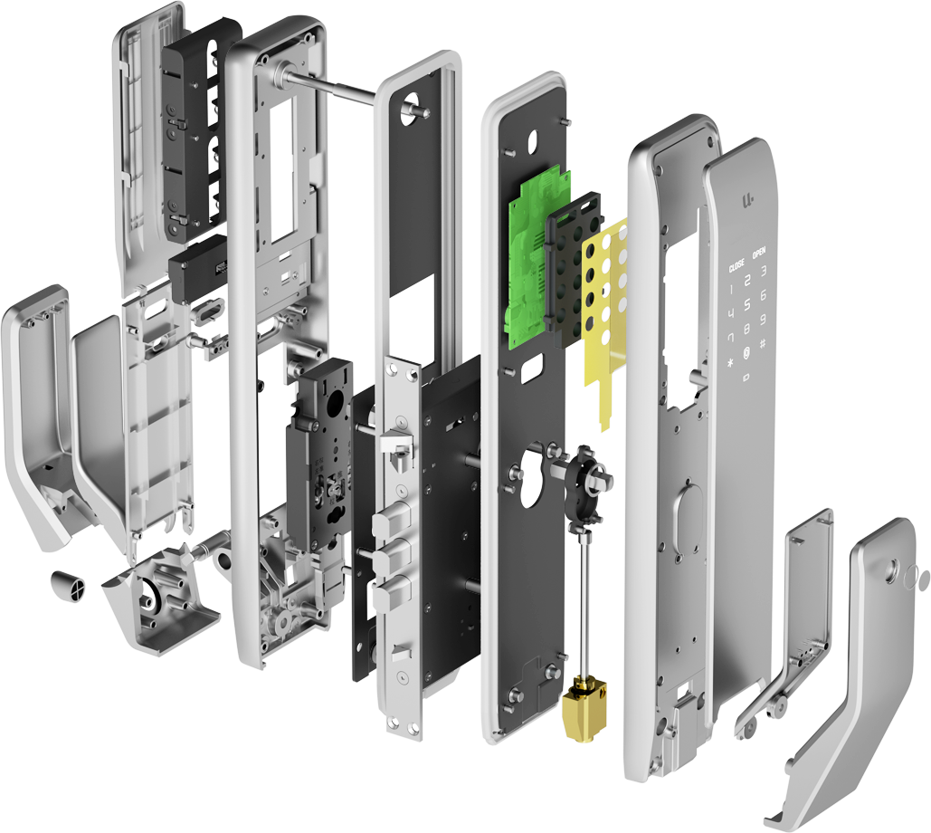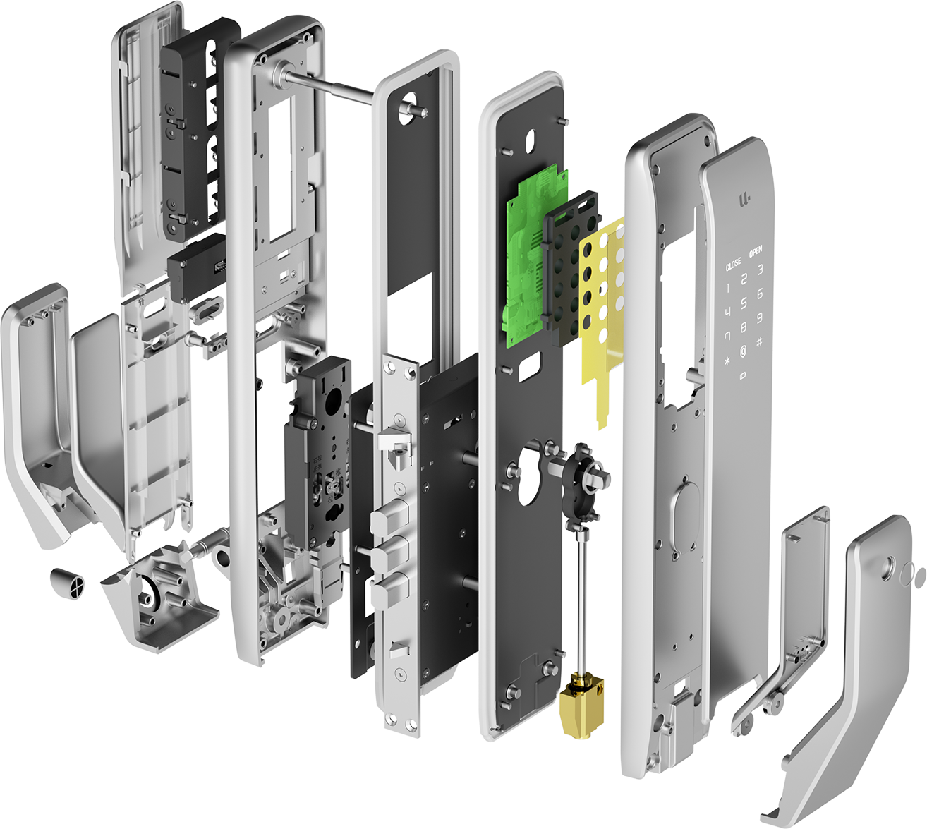 不銹鋼三防鎖體,精工鍛造,防撬、防暴力、防沖撞,隨手關門,立即自動反鎖,無需提拉反鎖或用鑰匙反鎖,若門未關好,門鎖會告警提醒。C級軌道葉片式鎖芯,防盜安全性C級>B級>A級,鑰匙孔底部隱藏,撬鎖難度升級。
